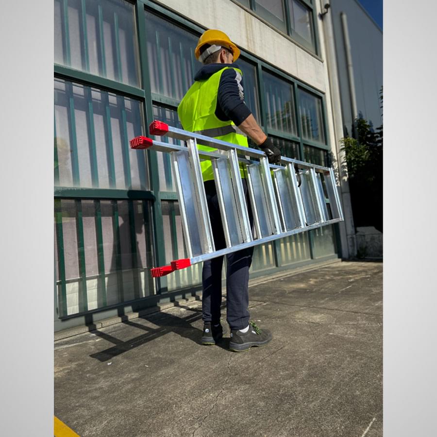 Escabeau à usage professionnel fabriqué en aluminium de robustesse maximale. Les marches sont clouées aux montants et constituent une structure très résistante. Très confortable selon la largeur de montée et de marches de 8,50 cm de profondeur.