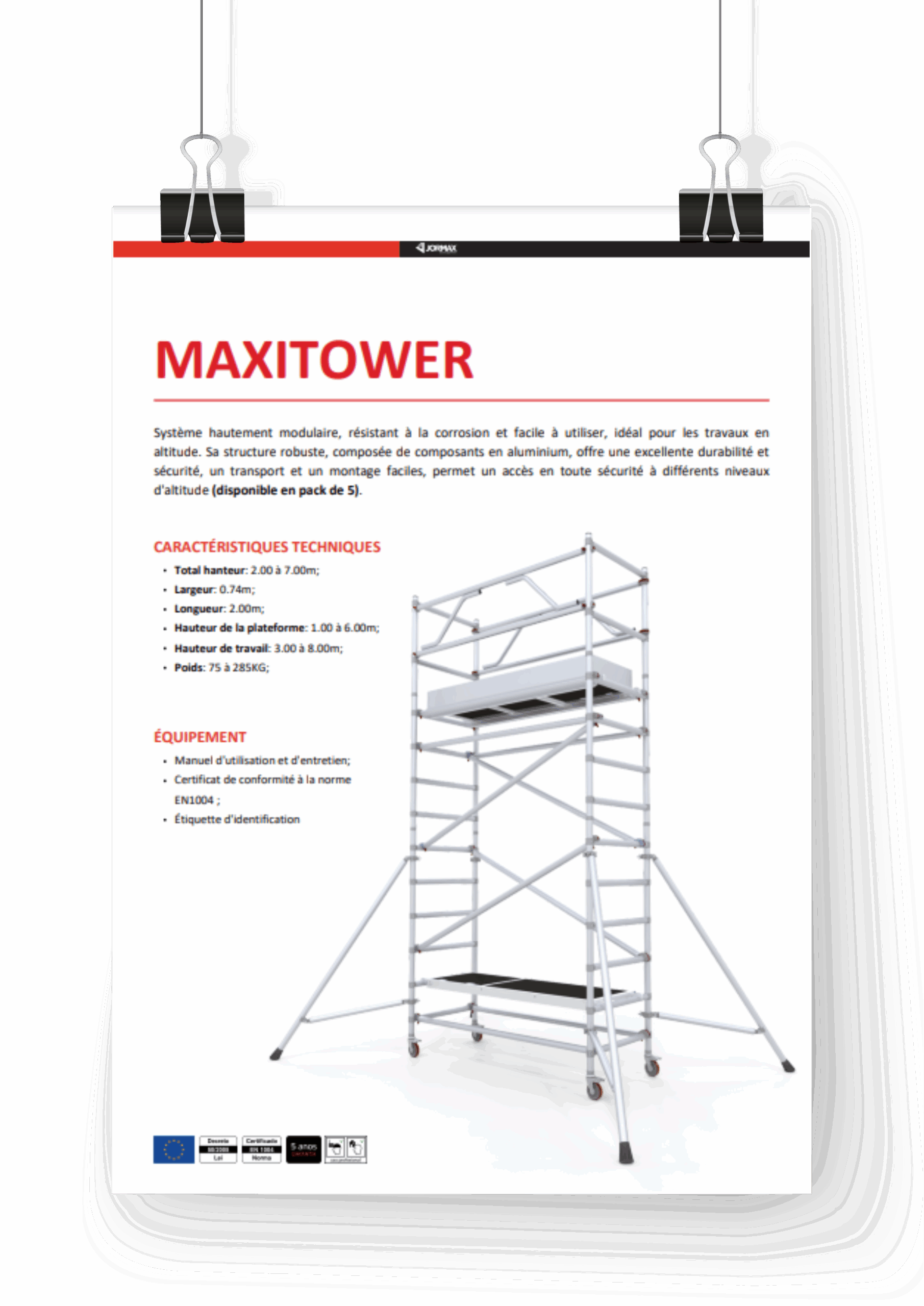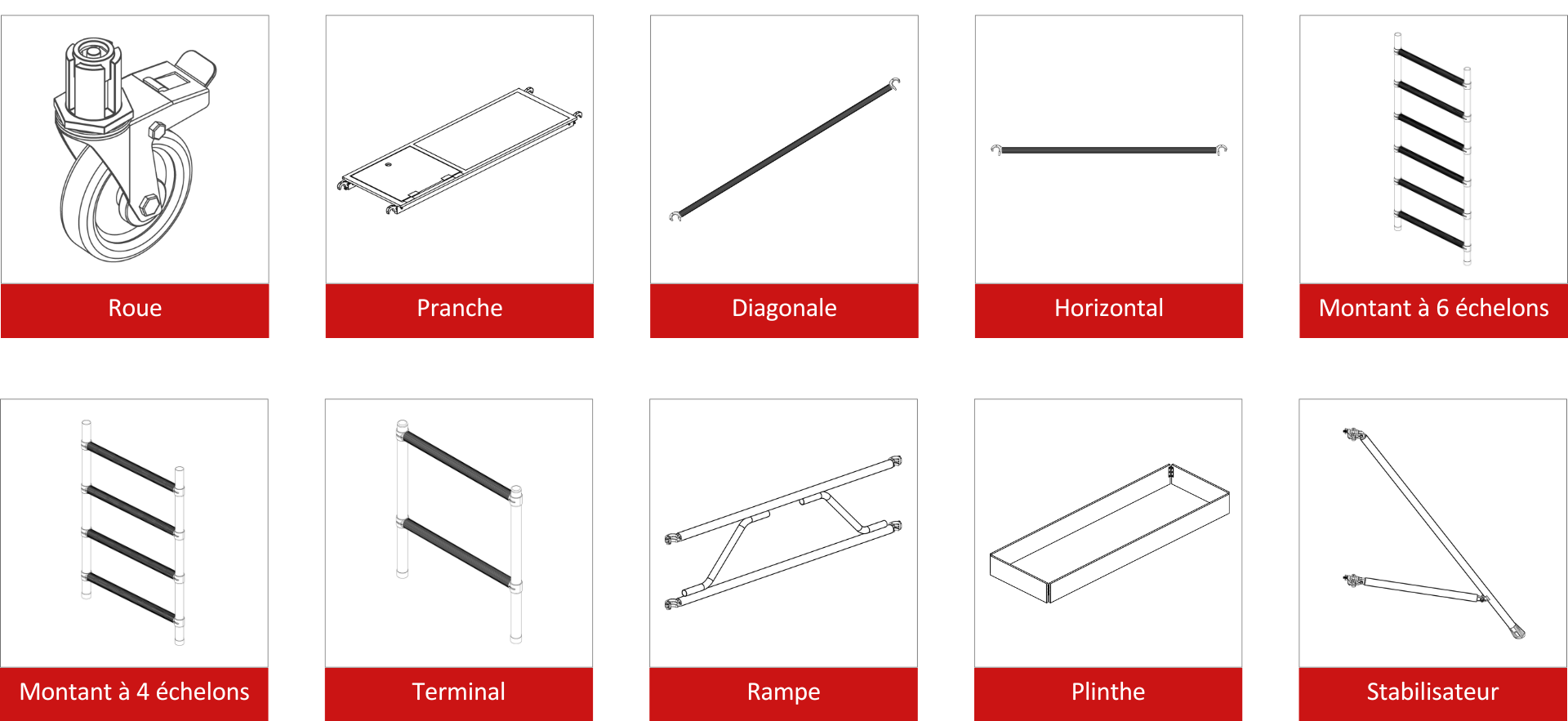 Système modulaire léger, résistant à la corrosion et facile à manipuler, idéal pour les travaux en hauteur. Sa structure robuste, composée de composants en aluminium, offreun excellente durabilité et sécuri6é, tout en facilitant le transport et le montage, permettant un accès sécurisé à différents nivaux de hauteur,.