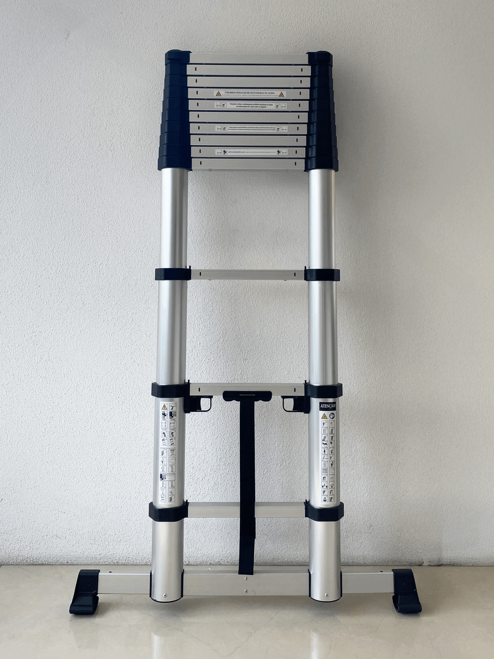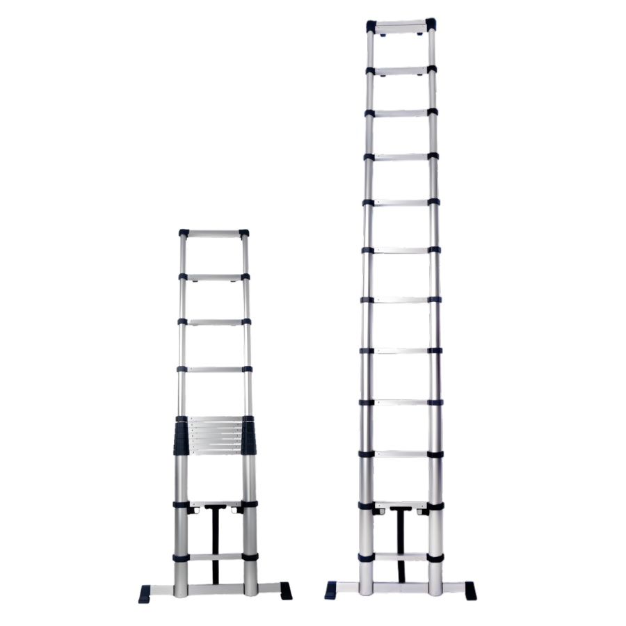 Échelle télescopique en aluminium réglable jusqu’à 4,80 m de hauteur de travail.