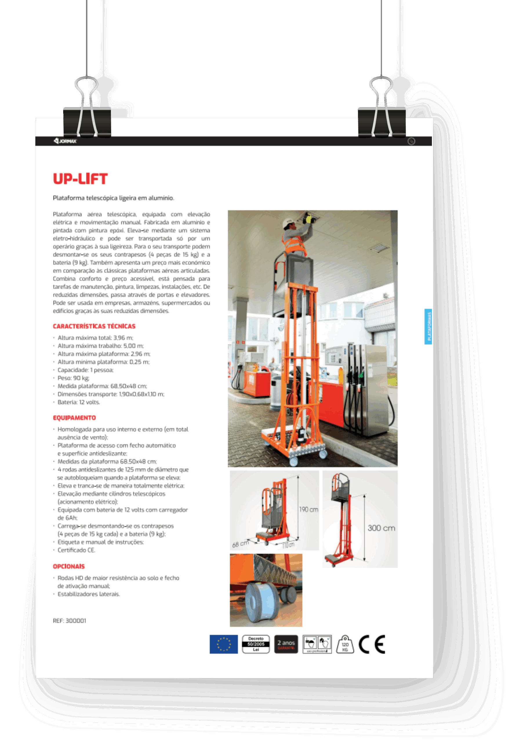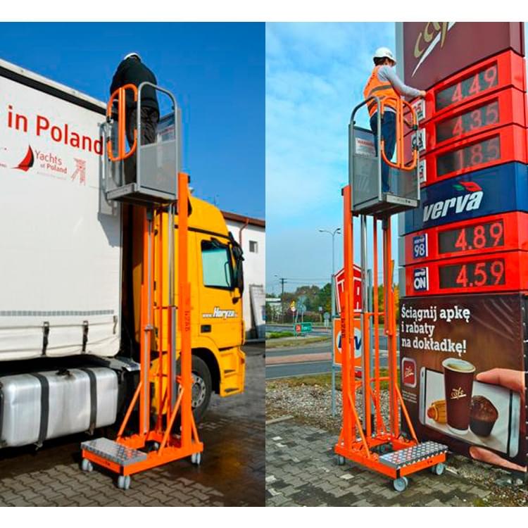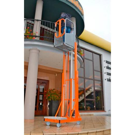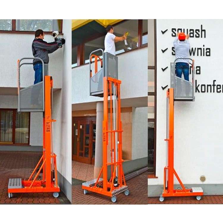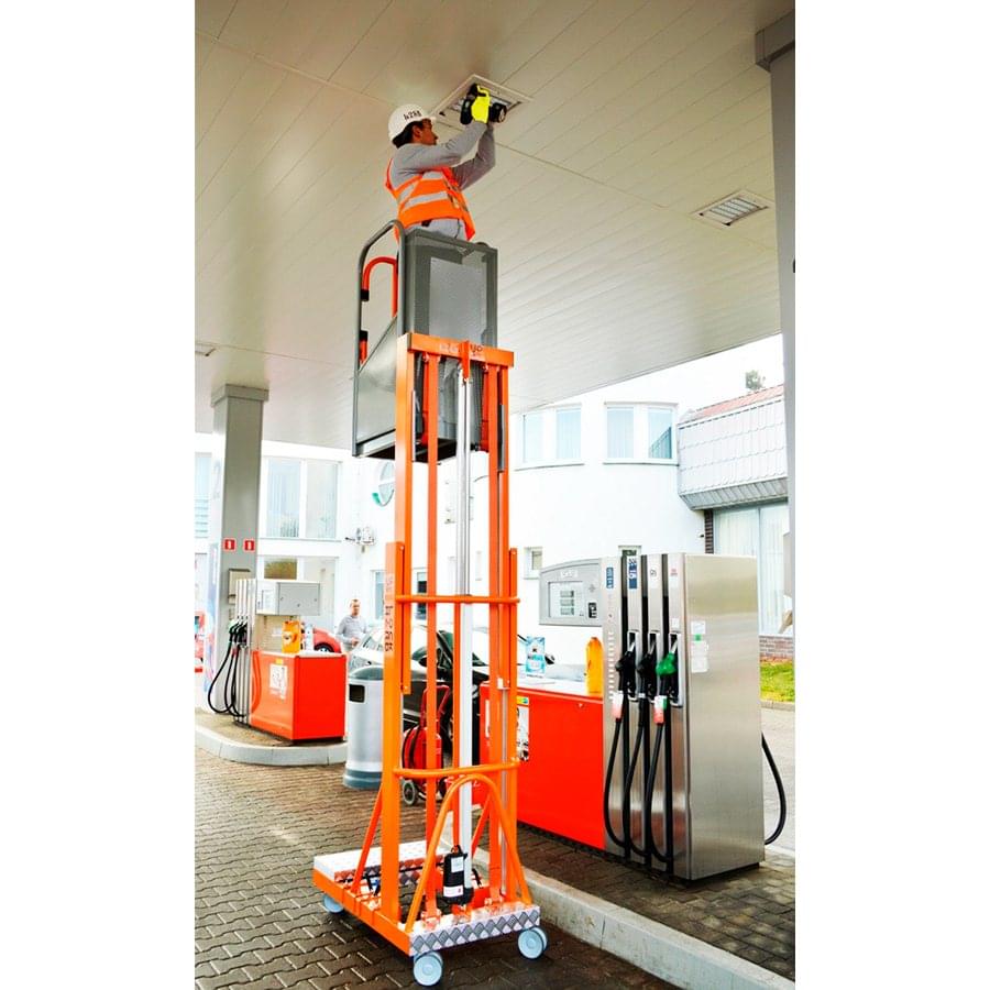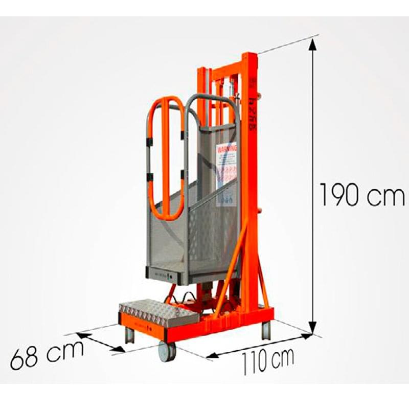 Plateforme aérienne télescopique, équipée d’un élévateur électrique et d’une manutention manuelle. Fabriqué en aluminium et peint avec de la peinture époxy. Il se lève au moyen d’un système électro-hydraulique et ne peut être transporté que par un ouvrier grâce à sa légèreté. Pour le transporter, ses contrepoids (4 pièces de 15 kg) et la batterie (9 kg) peuvent être démontés. Il présente également un prix inférieur par rapport aux plateformes aériennes articulées classiques. Allie confort et prix abordable, il est conçu pour la maintenance, la peinture, le nettoyage, l’installation, etc. De petite taille, il passe par les portes et les ascenseurs. Peut être utilisé dans les entreprises, les entrepôts, les supermarchés ou les bâtiments grâce à leur petite taille.