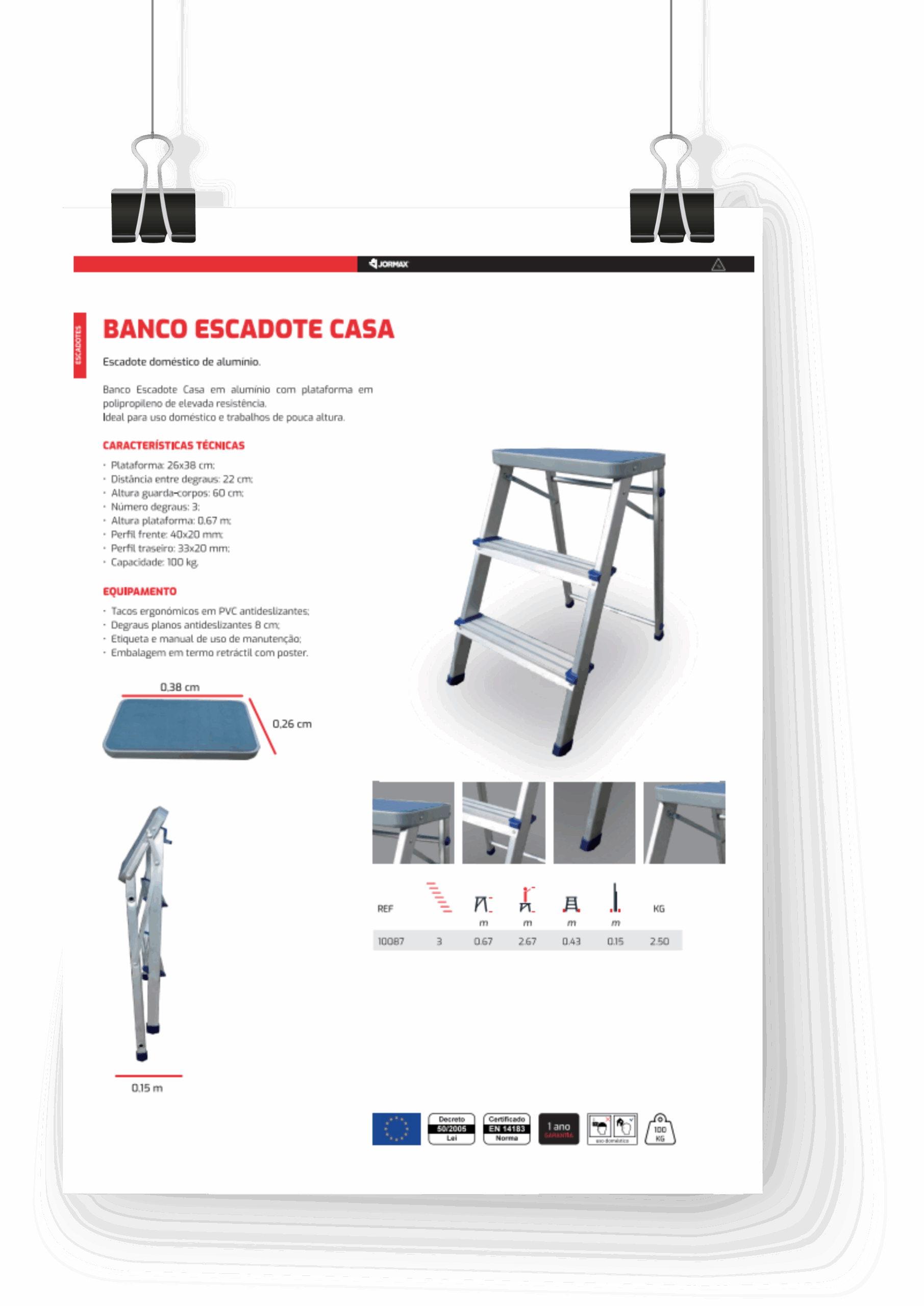 Banco Escadote Casa en aluminium avec plateforme en polypropylène à haute résistance. Idéal pour les travaux ménagers et les travaux de faible hauteur.