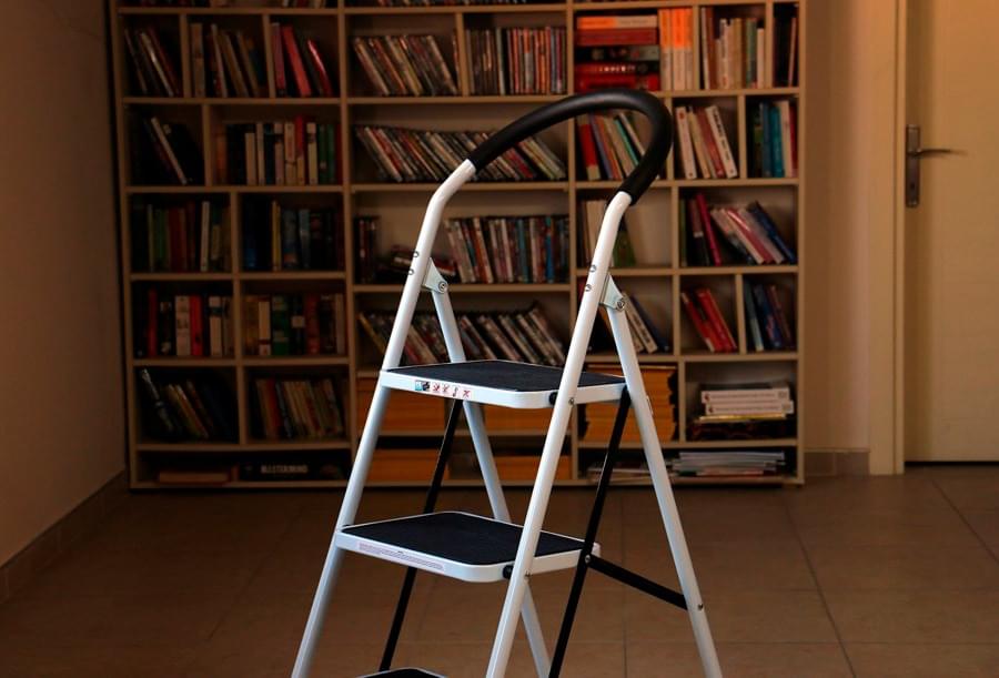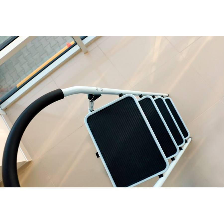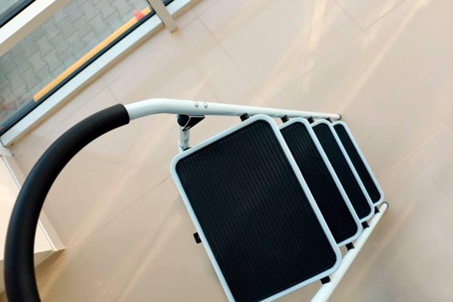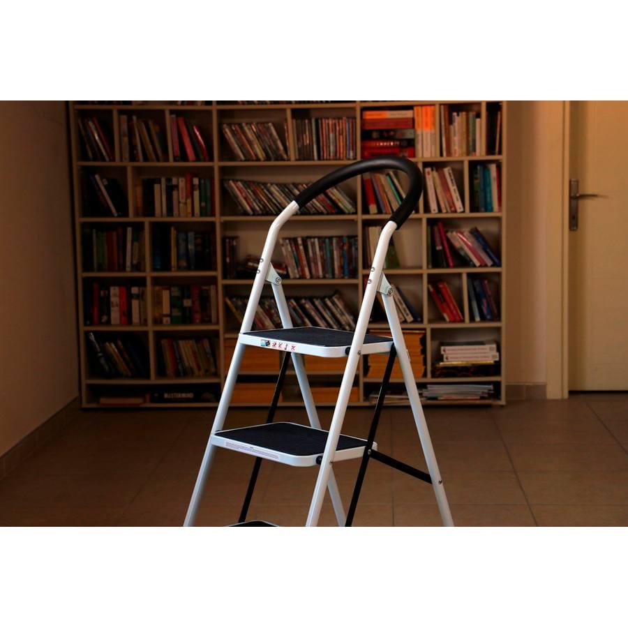 D’une montée, avec garde-corps, pour usage domestique. La structure du tabouret offre un support solide au sol.
