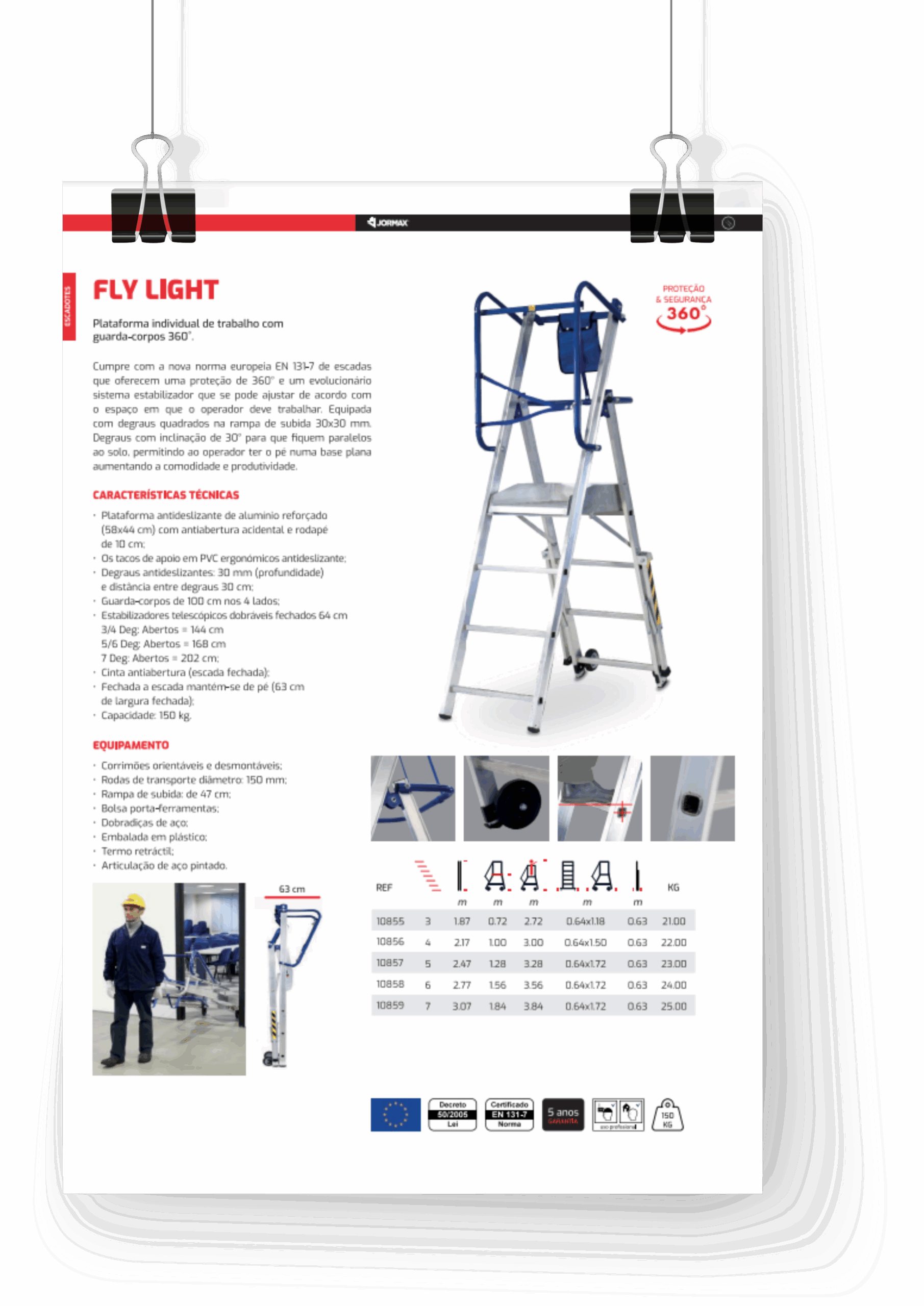 Conforme à la nouvelle norme européenne EN 131-7 des escabeaux offrant une protection de 360° et un système évolutionnaire de stabilisation qui peut s’adapter à l’espace dans lequel l’opérateur doit travailler. Équipé de marches carrées sur la rampe de montée 30×30 mm. Marches inclinées de 30° pour être parallèles au sol, permettant à l’opérateur d’avoir le pied sur une base plate en augmentant la commodité et la productivité.