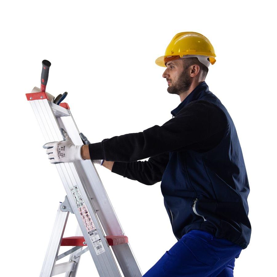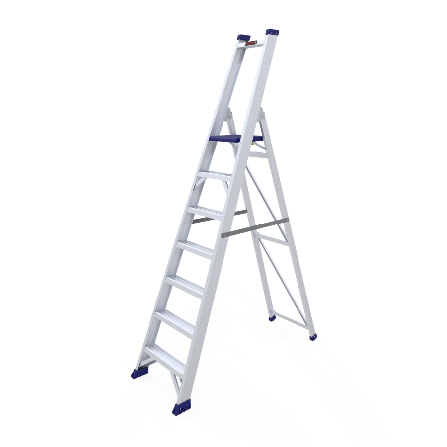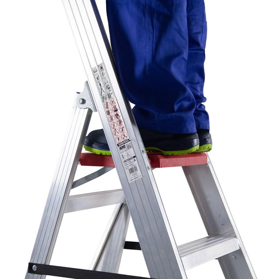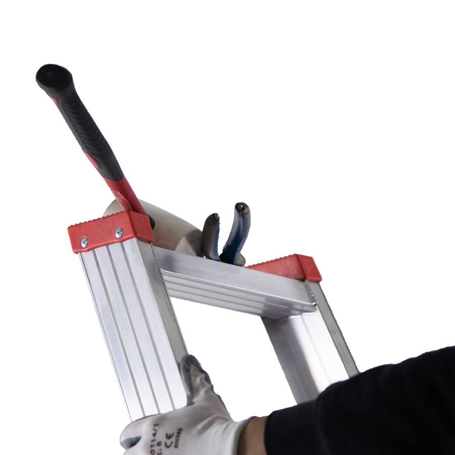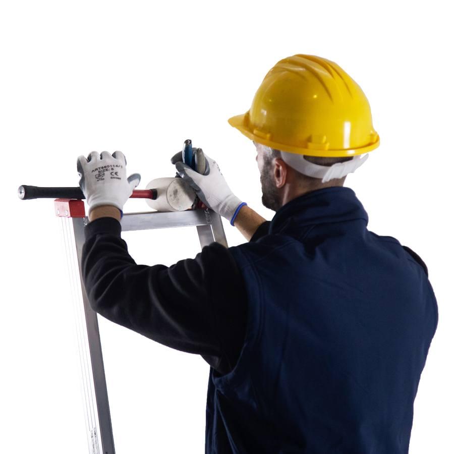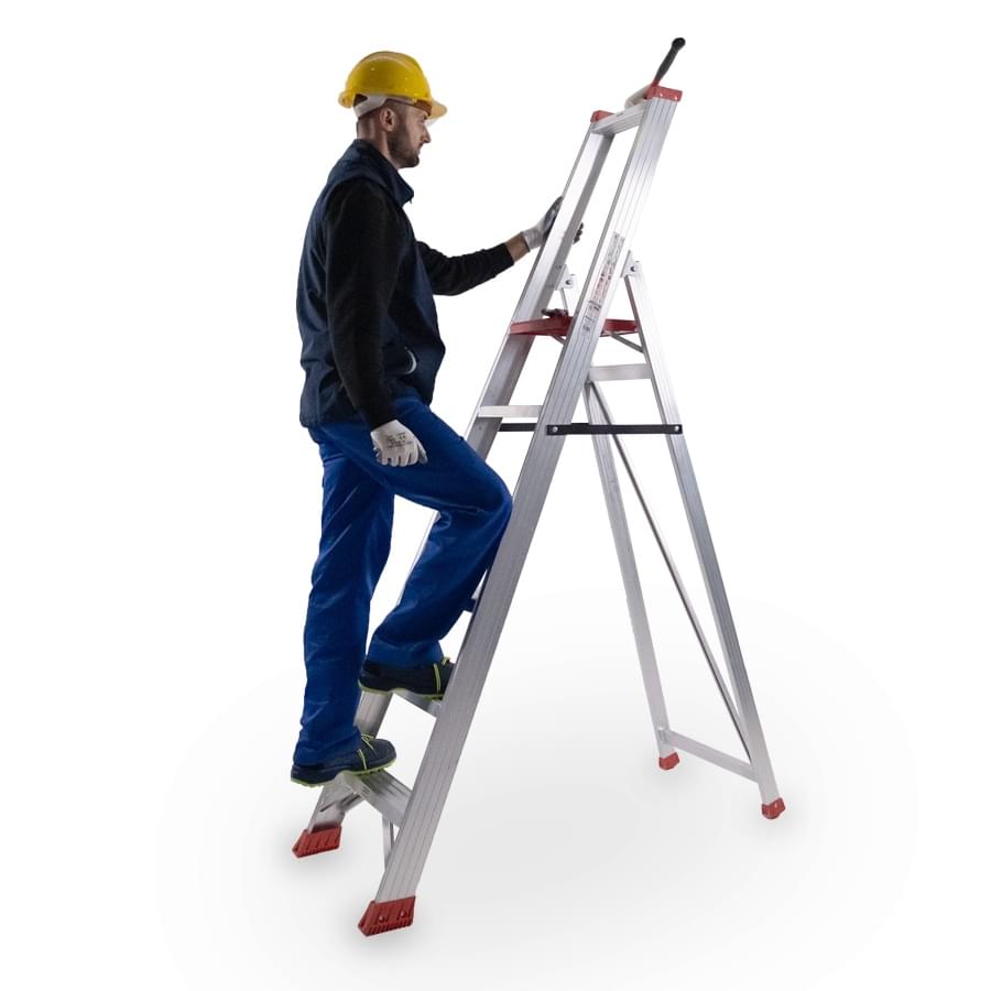 Escabeau à usage professionnel fabriqué en aluminium soudé donnant une robustesse maximale. Les marches sont soudées aux montants et constituent une structure très résistante. Très confortable par sa largeur de montée et de marches de 8 cm de profondeur. Il dispose d’un plateau et porte-outils en haut, large plateforme et garde-corps qui offre une grande sécurité pour effectuer des travaux en hauteur. L’escabeau Industrial est certifiée conforme à la norme européenne EN 131.