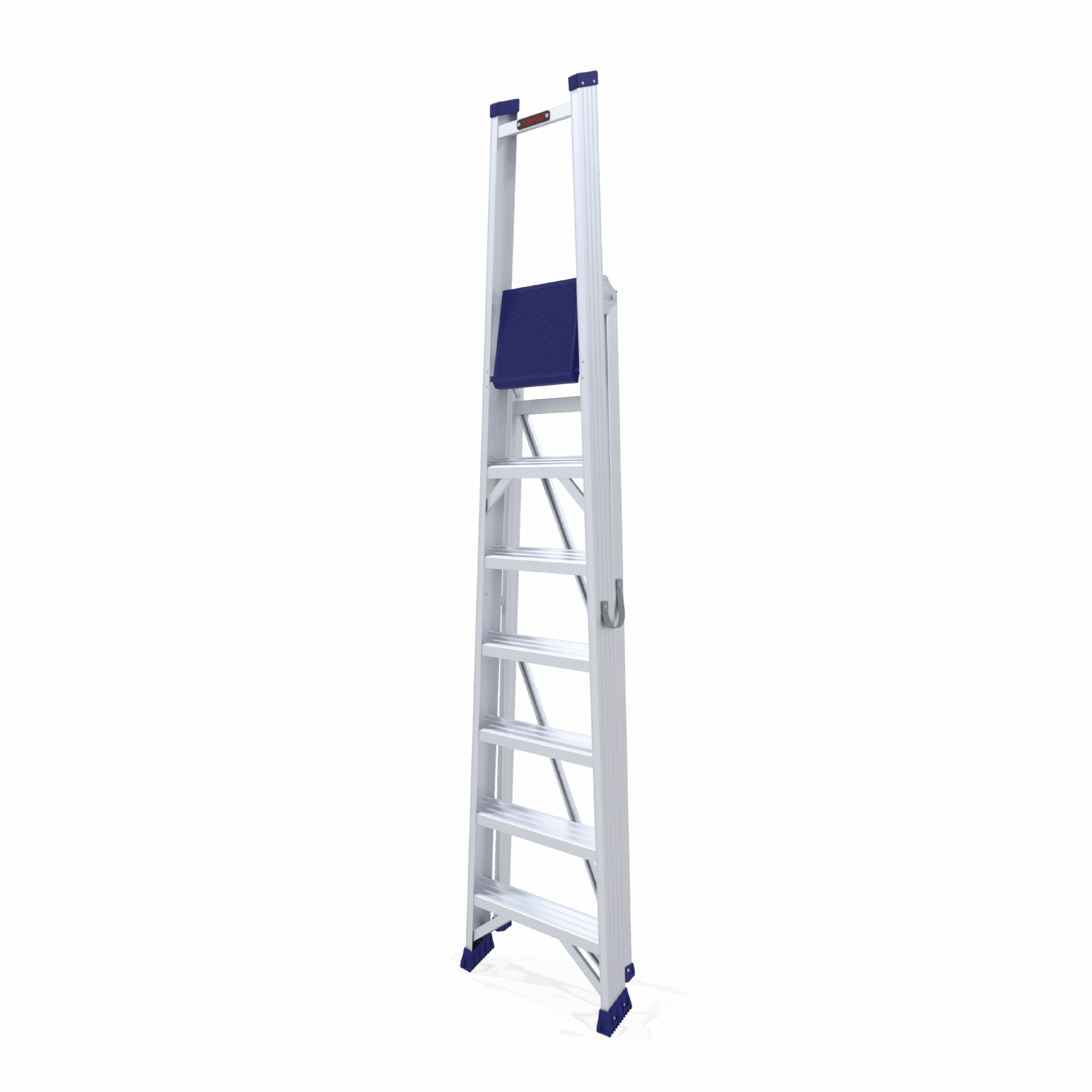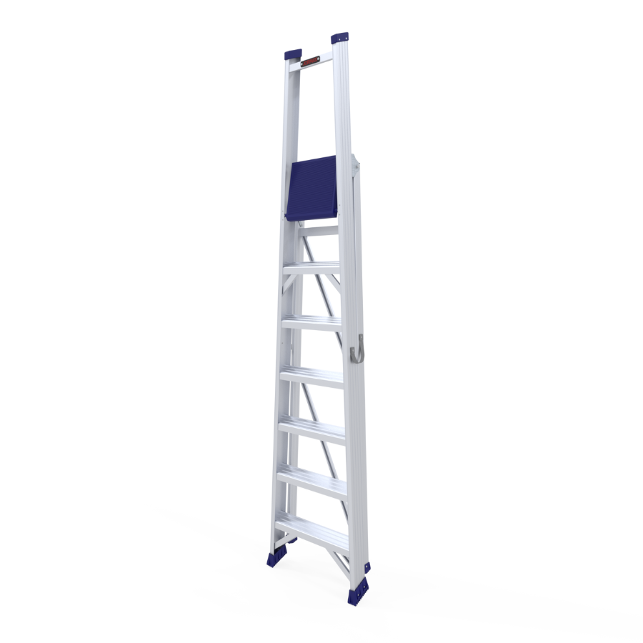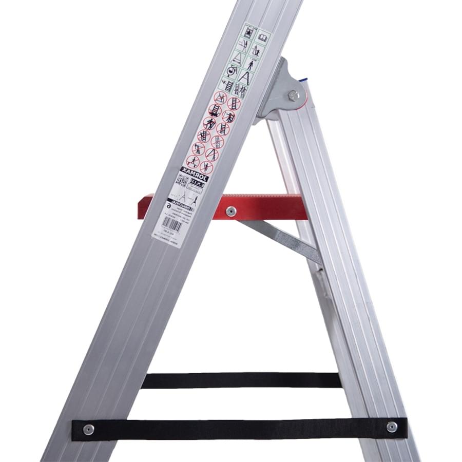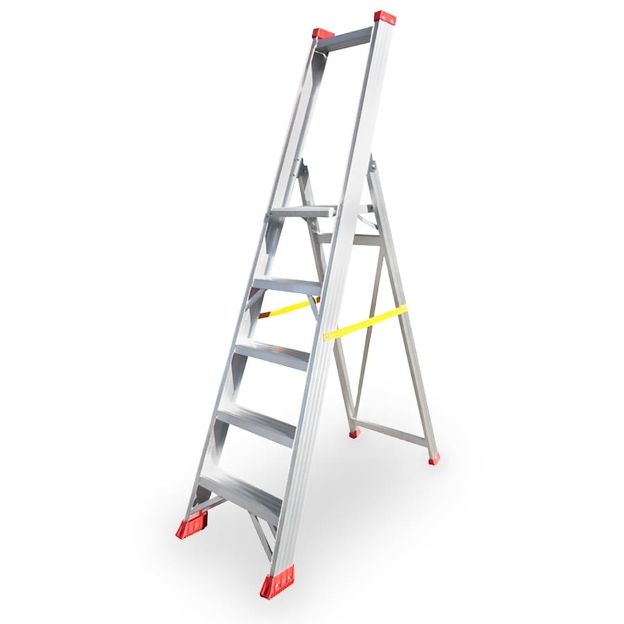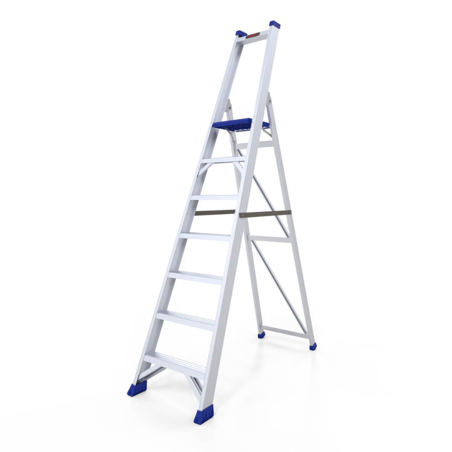 Escabeau à usage professionnel fabriqué en aluminium soudé donnant une robustesse maximale. Les marches sont soudées aux montants et constituent une structure très résistante. Très confortable par sa largeur de montée et de marches de 8 cm de profondeur. Il dispose d’un plateau et porte-outils en haut, large plateforme et garde-corps qui offre une grande sécurité pour effectuer des travaux en hauteur. L’escabeau Industrial est certifiée conforme à la norme européenne EN 131.
