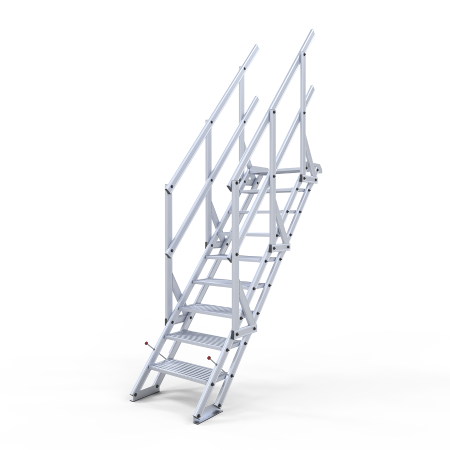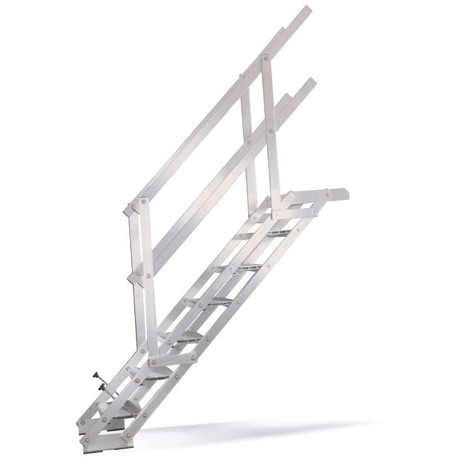 Il permet d’accéder facilement à différentes hauteurs avec une fixation stable au sol et à la place d’appui. L’échelle est munie de mains courantes des deux côtés pour protéger l’utilisateur de haut en bas. Les larges semelles d’appui en PVC permettent de modifier l’inclinaison de l’échelle en s’adaptant au terrain et en maintenant la stabilité. Lorsque vous modifiez la hauteur de l’appui, la pente varie, gardez toujours des marches en position horizontale pour une montée confortable. Les pièces d’appui, la plateforme et les patins, ont des trous pour pouvoir être fixés et éviter ainsi les glissements accidentels, en fonction du terrain. Il est parfait pour les toits ou les plafonds très en pente.
