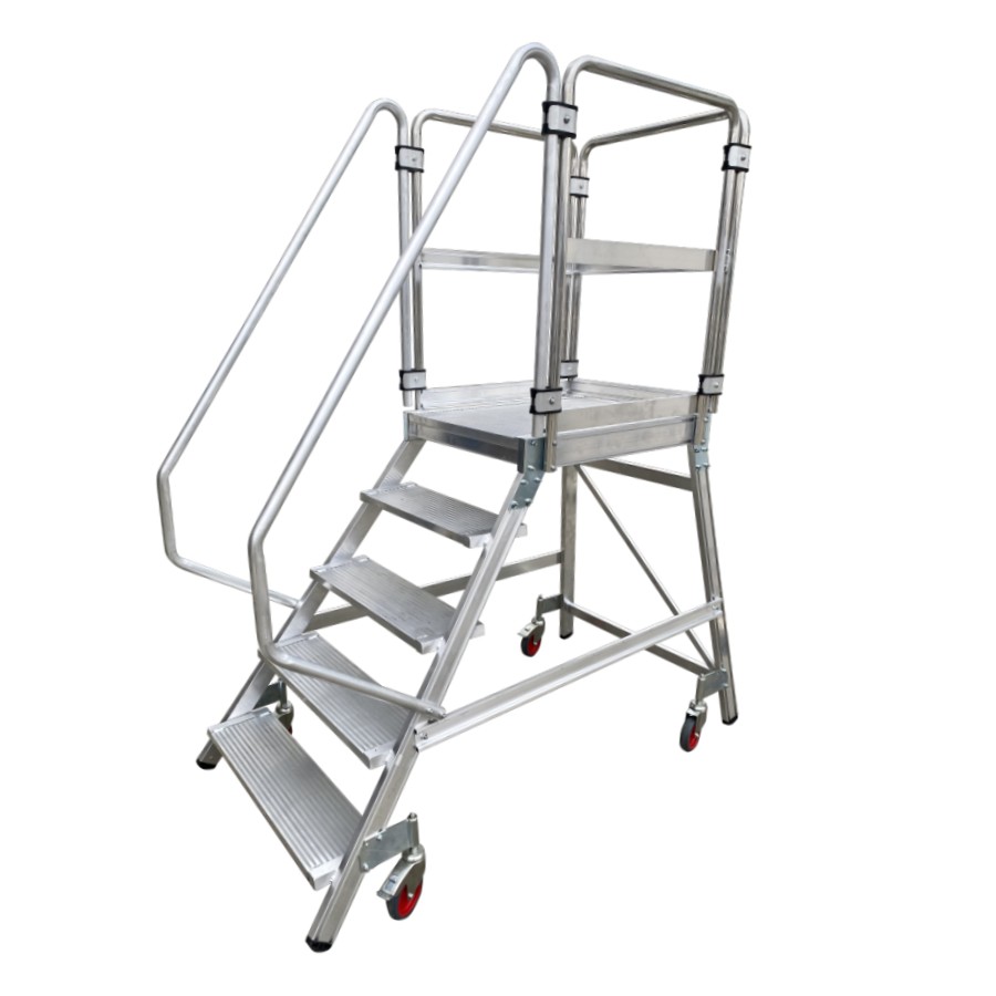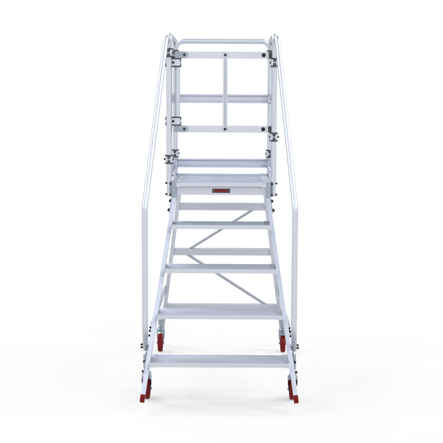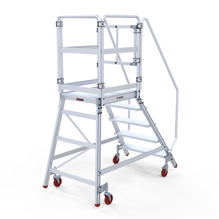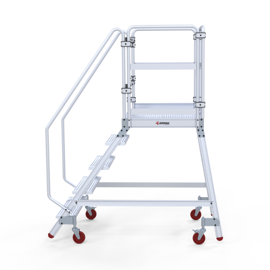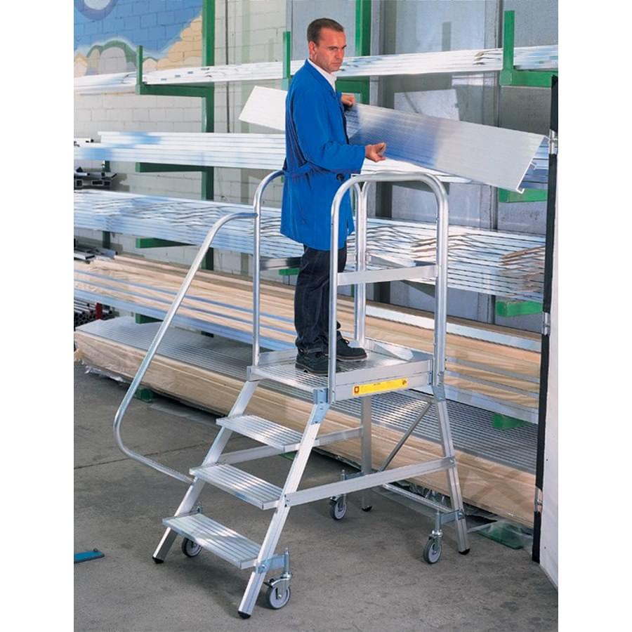 Plateforme d’entrepôt mobile en aluminium extrudé côtelé. Ils ont une large plateforme de travail de 60×80 cm, des plinthes et des garde-corps de 1 m de hauteur qui protègent le travailleur. Escalade confortable de 60 cm de large et de marches plates antidérapants inclinées à 55° avec une profondeur de 20 cm. Le système de freinage automatique s’active lorsque le plateforme est en position d’utilisation et se désactive lorsque l’opérateur descend. Le plateforme se déplace facilement grâce à ses roues de 125 mm de diamètre. Côté arrière, presque vertical, perpendiculaire au sol, permettant au travailleur de s’approcher des machines ou des surfaces sur lesquelles le travail doit être effectué. Le plateforme est démontée et dispose d’un manuel de montage détaillé.