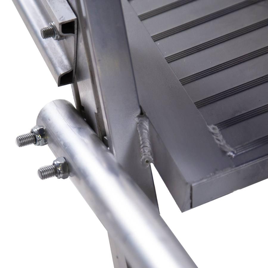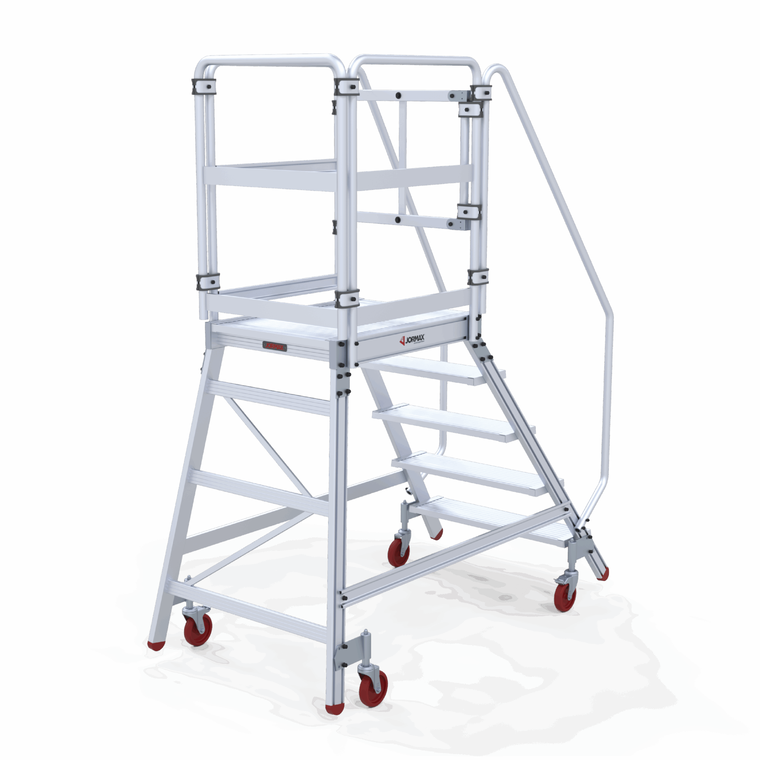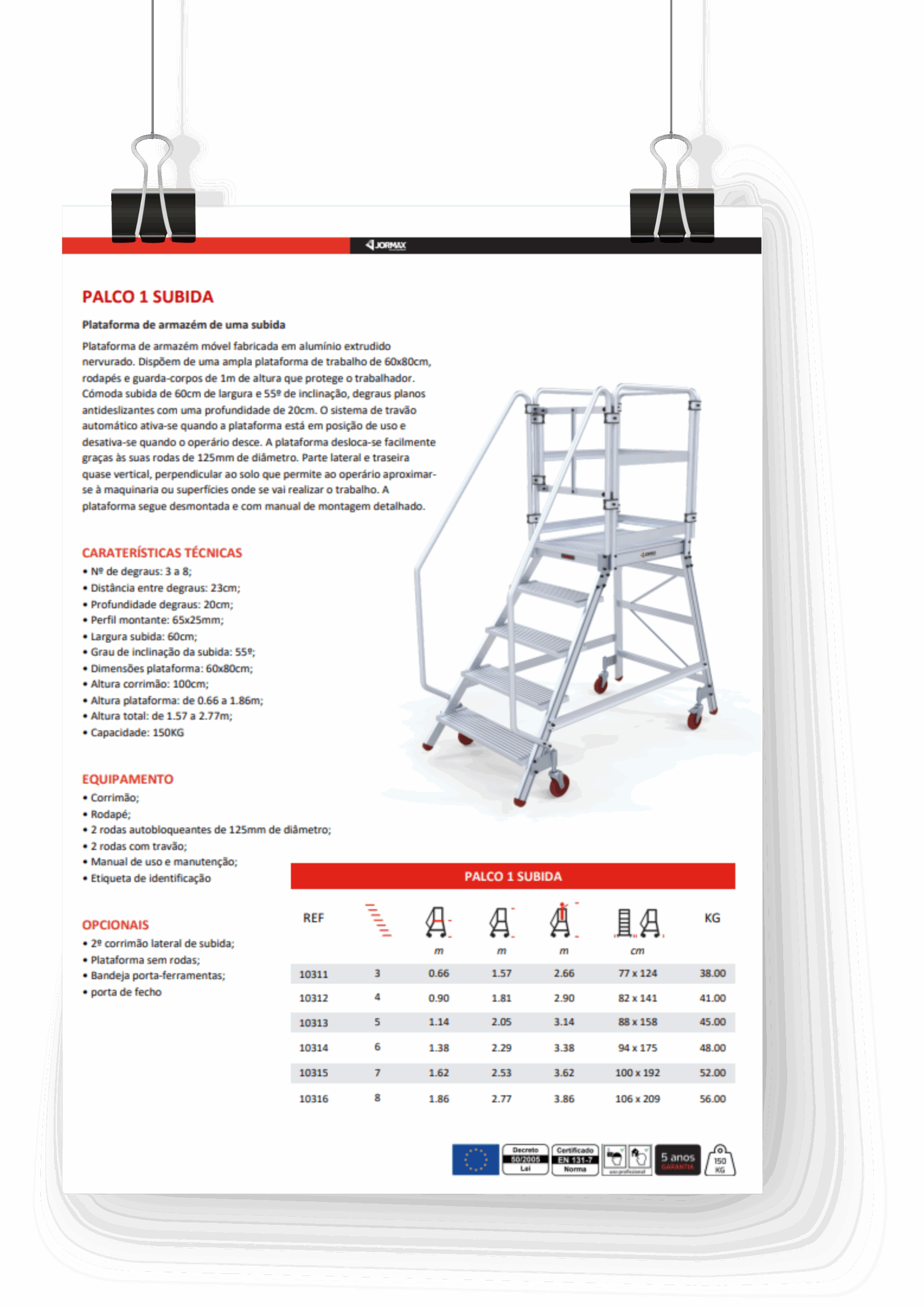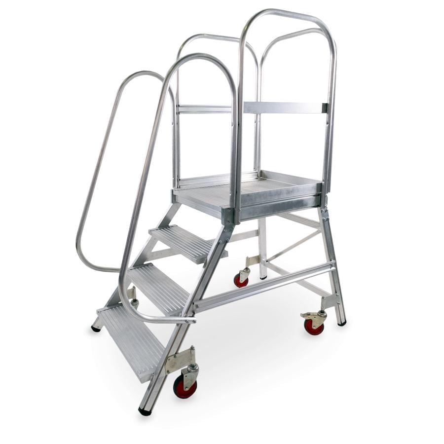 Plateforme d’entrepôt mobile en aluminium extrudé côtelé. Ils ont une large plateforme de travail de 60×80 cm, des plinthes et des garde-corps de 1 m de hauteur qui protègent le travailleur. Escalade confortable de 60 cm de large et de marches plates antidérapants inclinées à 55° avec une profondeur de 20 cm. Le système de freinage automatique s’active lorsque le plateforme est en position d’utilisation et se désactive lorsque l’opérateur descend. Le plateforme se déplace facilement grâce à ses roues de 125 mm de diamètre. Côté arrière, presque vertical, perpendiculaire au sol, permettant au travailleur de s’approcher des machines ou des surfaces sur lesquelles le travail doit être effectué. Le plateforme est démontée et dispose d’un manuel de montage détaillé.