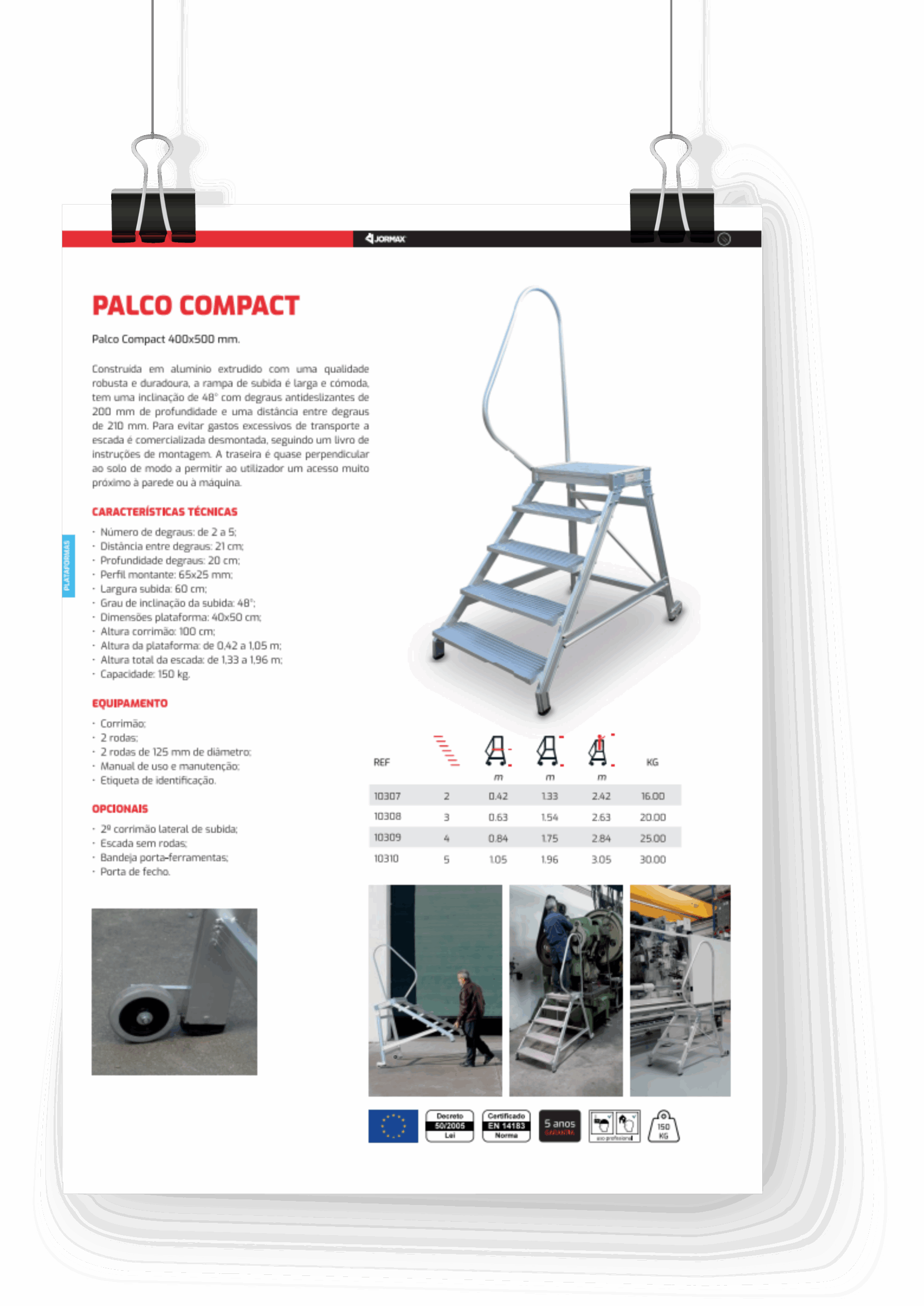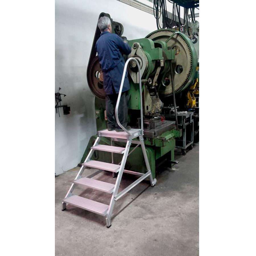 Construite en aluminium extrudé de qualité robuste et durable, la rampe montée est large et confortable. Elle présente une inclinaison de 48° avec des marches antidérapants de 200 mm de profondeur et une distance entre des marches de 210 mm. Pour éviter des coûts de transport excessifs, l’échelle est commercialisée démontée selon un manuel d’installation. L’arrière est presque perpendiculaire au sol afin de permettre à l’utilisateur un accès très proche au mur ou aux machines.