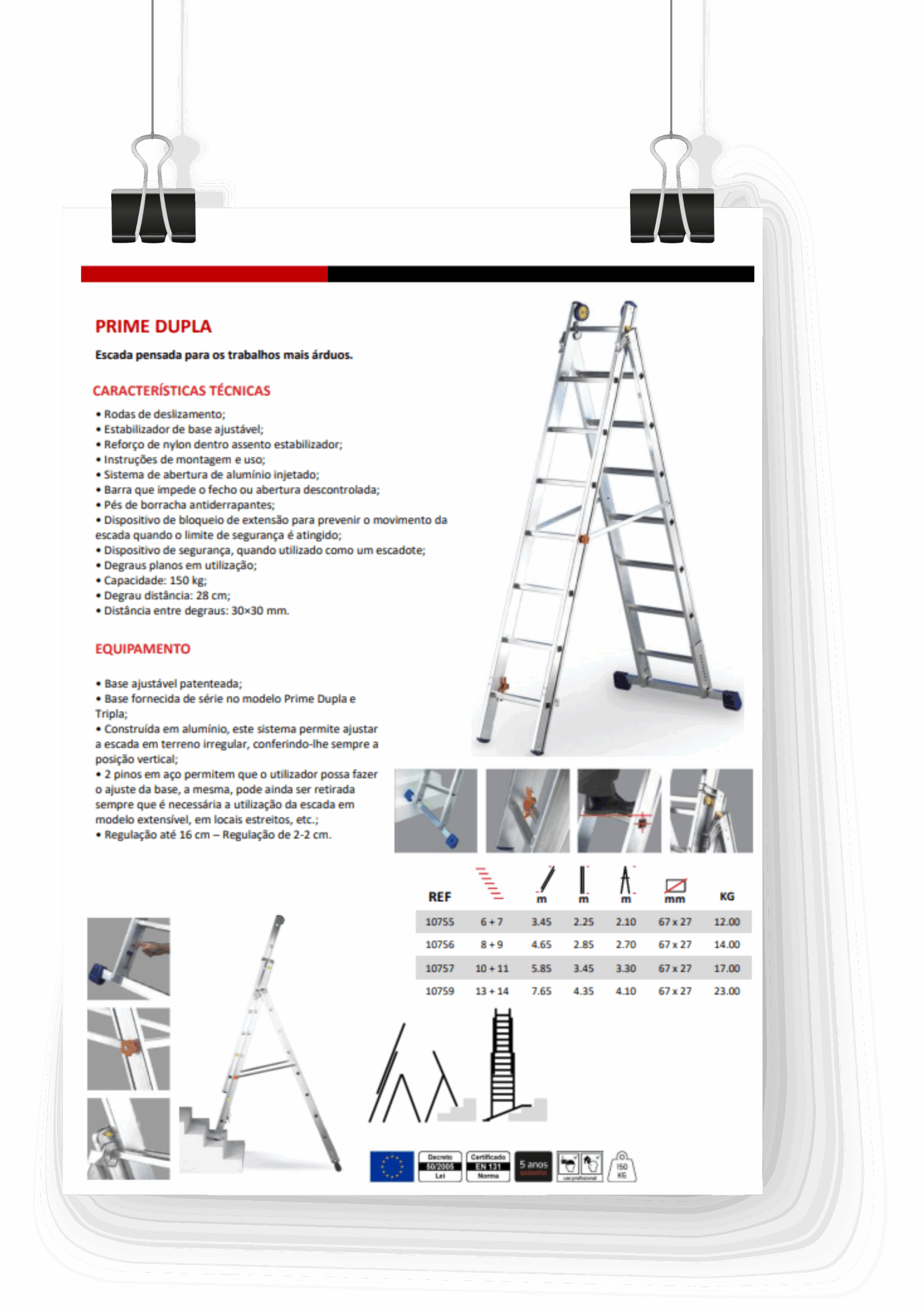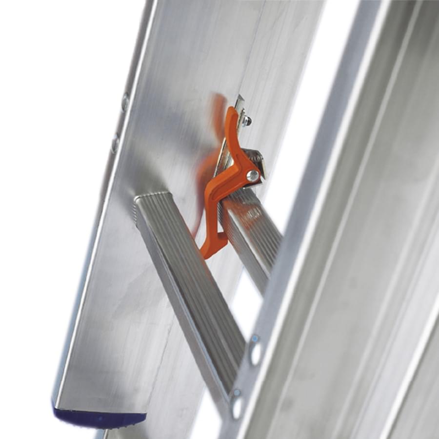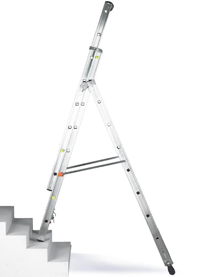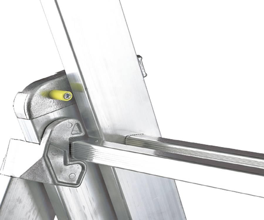 Prime Dupla est une échelle professionnelle en aluminium à deux sections qui peut être transformée et peut être utilisée à la fois comme échelle et comme escabeau.