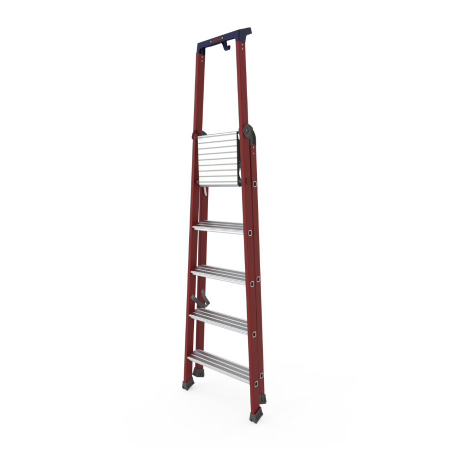 Échelle Pro’Master en Fibre de Verre avec marches larges et porte-objets.