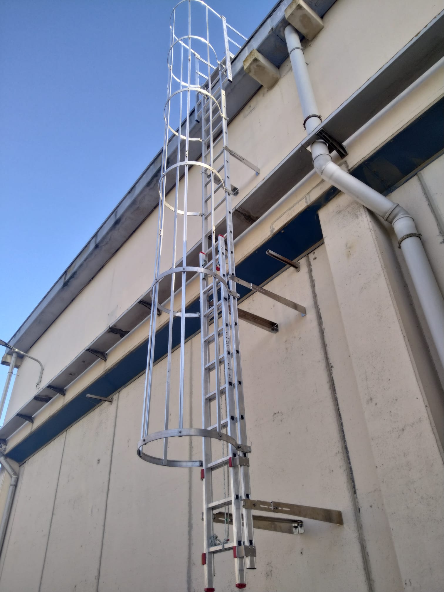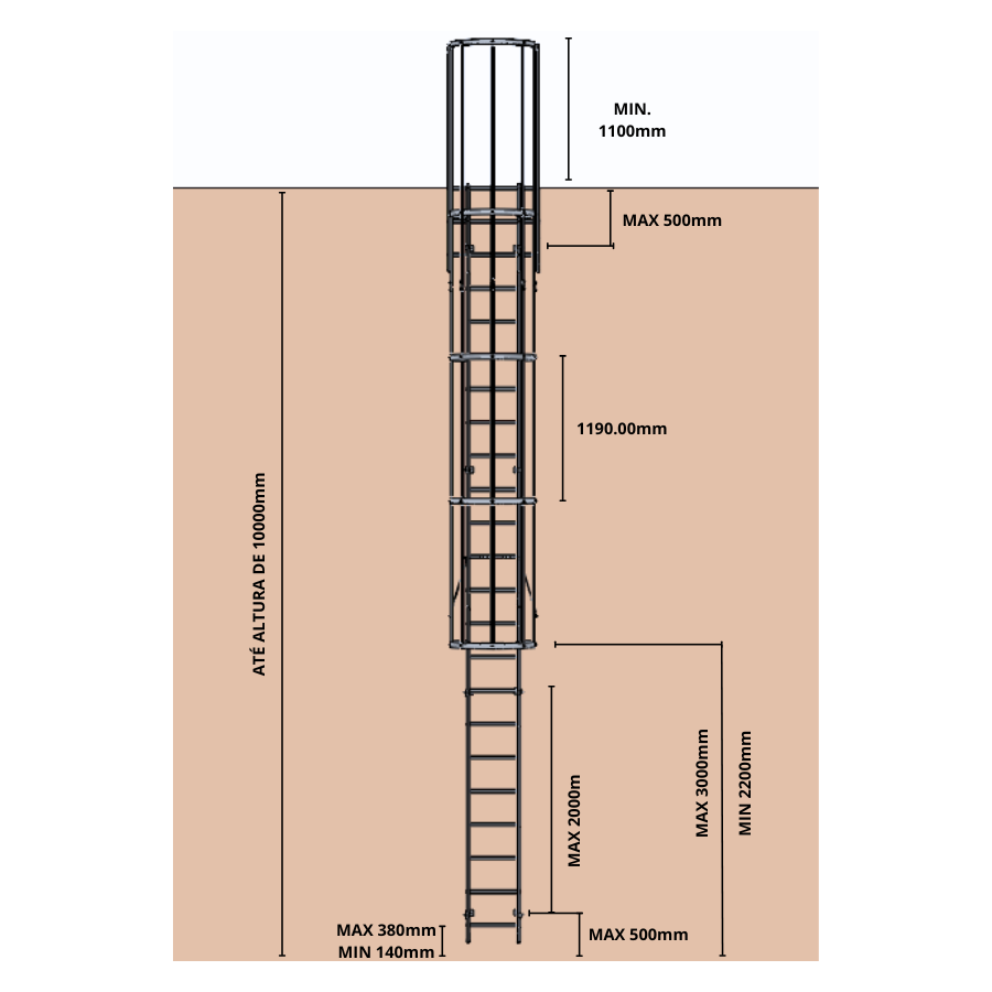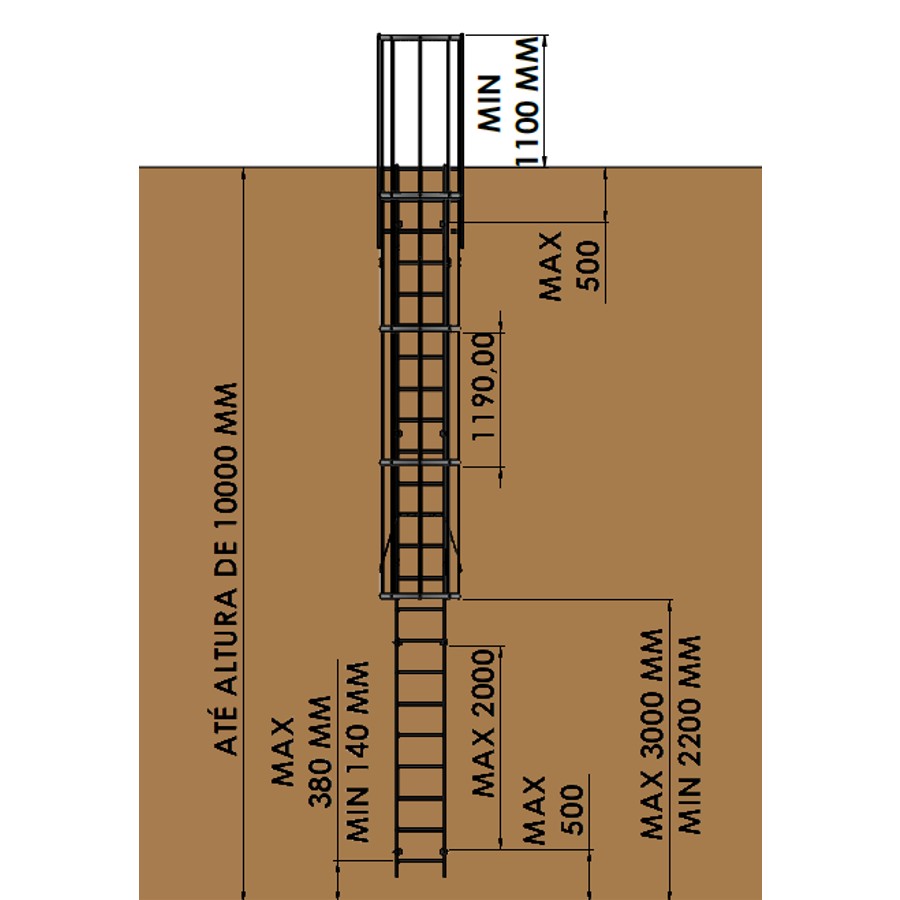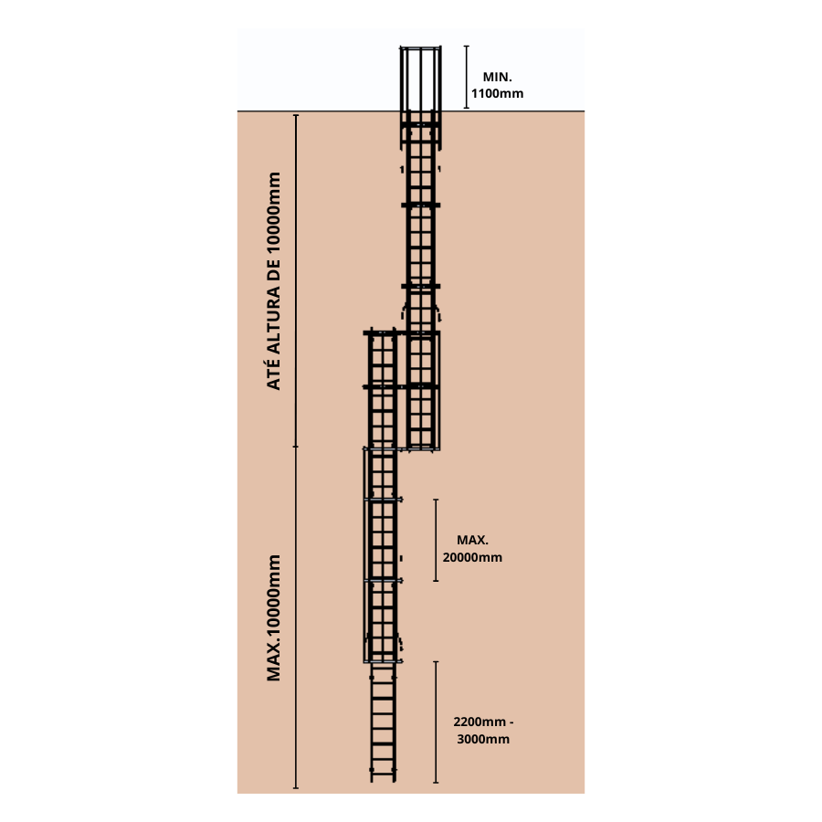 Uma escala até uma altura de 5 m (inclui guardas de proteção)