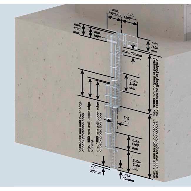Une nouvelle technique de fixation haute résistance offrant une protection arrière importante est la réponse moderne aux exigences croissantes en matière d’économie de production. Nous planifions les échelles verticaux en harmonie étroite avec la partie demandeuse, en fonction de l’emplacement et du but de l’utilisation. Après tout, une bonne planification est la moitié de la solution. Selon les conditions et le but, différentes normes sont applicables pour la construction d’échelles verticales. Les échelles verticales Jormax répondent à ces normes.